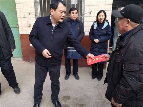 在石槽镇,李全林一行先后到张寨行政村部分优抚对象、困难老党员、贫困群众家中和石槽镇敬老院,深入敬老院详细了解他们工作生活、身体状况及乡镇敬老院建设及惠民政策落实情况,为拥军优抚对象、困难老党员、五保老人送去大米、食用油、面粉、棉被等生活物资和慰问金,让他们切实感受党和政府的温暖,叮嘱大家要保重身体,自立自强、战胜困难,确保家庭生活越来越好。