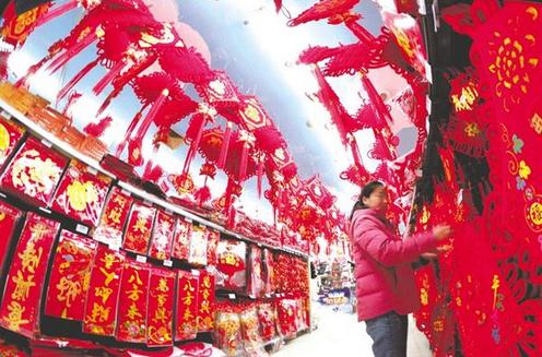 记者近日采访看到,周口的年货市场已经开启,年画市场最先吹起红火的节日风,红彤彤的对联、中国结等被商家挂满店铺,吸引客人上门。记者 梁照曾 摄