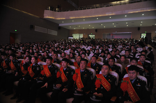 熠熠金盾耀新春,峥嵘岁月诉衷肠。1月24日晚,鹿邑县文化中心大会堂里座无虚席,鹿邑县公安部门在这里隆重举行“2018忠诚记忆”职业荣誉颁奖仪式。县领导李刚、李国际、雷申、侯自峰、陈巍、何新敏、齐梅英等和公安民警、警属代表等共千余观众在现场共同见证。