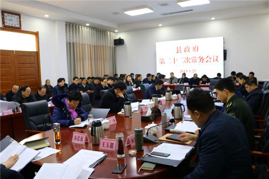 1月25日,鹿邑县委副书记、县长李刚主持召开县政府第22次常务会议。会议对公安机关坚持发展新时代“枫桥经验”高质量推进“一村一警”工作、鹿邑县2019年春运工作方案、职工医疗保险大额补充保险、政府集中采购目录及标准、希夷文苑(二期)、谷阳花苑棚改安置方案、鹿邑县2019年兵役登记等工作进行了研究。陆志杰、王晓征、翟杰、何新敏、王玉超、谷长征、张峰、曹玉娟、王初立等县处级领导出席会议,并针对各部门汇报的工作、方案提出意见和建议。县直各委局主要负责人以及各乡镇长、办事处主任参加会议。