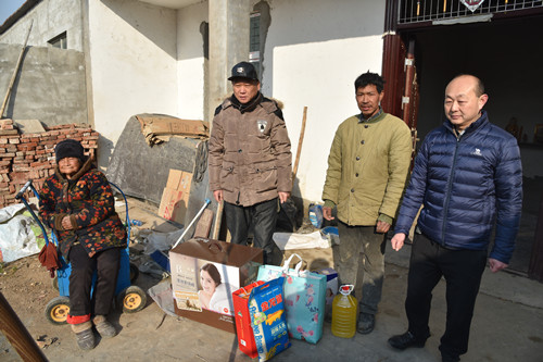 区政协帮扶工作队来到了党庄贫困户家中,给他们送去棉被、床上用品四件套、大米、食用油、火腿肠和牛奶等慰问品,送去新春的问候。每到一家,帮扶队员都关切地询问他们的身体健康状况、家庭收入情况、子女就学情况等,并希望他们坚定信心,勇于克服困难,保持乐观的生活态度,积极创业就业,努力改善家庭生产生活条件,早日实现脱贫致富。