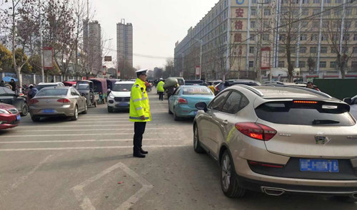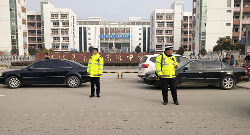 1月27日,正逢郸城县第一高级中学学生放假,接学生车辆大幅增加,交通压力逐渐增大。郸城县公安局副政委朱卫兵提早计划,派出郸城县交警大队治超中队民警作为疏导交通小分队,分别在一高周围的多个路口为郸城县一高交通安全保驾护航,确保师生“顺畅”回家。