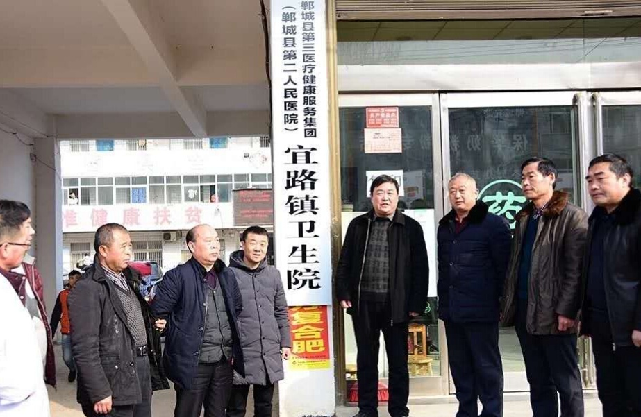 在宜路卫生院,副组长刘廷亮主持揭牌仪式。晋继忠与宜路卫生院院长刘峰为第三医疗健康服务集团(郸城县第二人民医院)宜路镇卫生院揭牌。