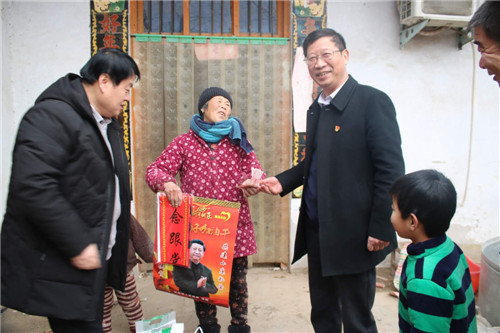近日,郸城法院院长王洪彬、副院长胡忠学、政治部主任张凤华带领法院部分干警深入宜路镇张庄行政村,走访慰问困难群众,为他们送去慰问金和新春祝福,将党和法院的温暖送到贫困户心坎上。同时,王洪彬要求驻村工作队要时刻把困难群众的冷暖放在心上,及时了解他们的所需,积极主动帮助他们解决实际困难,让困难群众度过欢乐、温暖、祥和的春节。