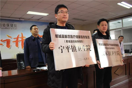杨军宣读了《郸城县第四医疗健康服务集团关于成立全面推进医疗健康服务共同体建设领导小组的通知》,王斌宣读了《郸城县第四医疗健康服务集团关于成立医疗健康服务共同体医院的通知》。第四医疗健康服务集团成员单位宁平镇卫生院院长许向东作代表发言。