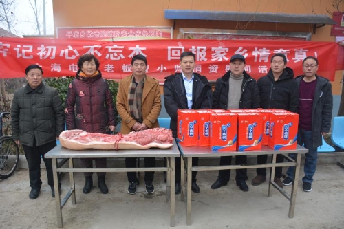 1月30日上午,商水县平店乡在曾庄村举行在外创业人员曾小帅献爱心、送温暖捐赠仪式。