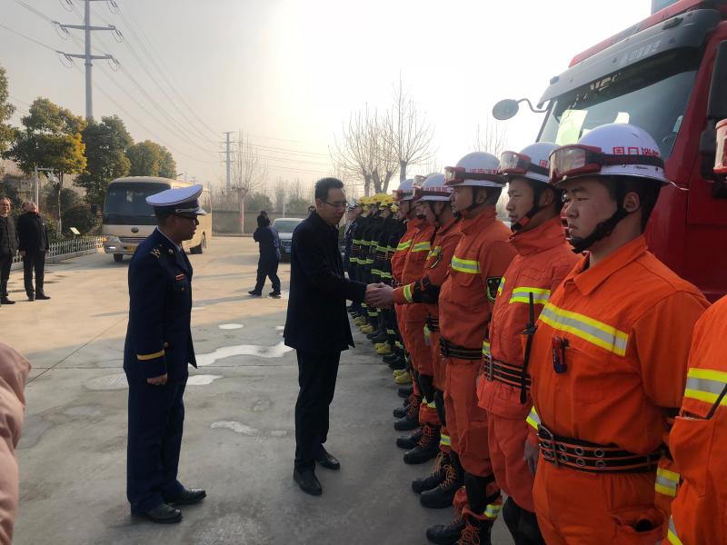 在开发区消防大队,王文峰与每一位消防队员握手,详细询问他们的工作、生活、学习情况。王文峰指出,2018年,开发区消防大队牢记“听党指挥,能打胜仗,作风优良”,努力训练,敢于战斗,面对一系列急难险重任务能够拉得出、打得赢,为保障人民群众生命财产安全作出了重要贡献。新的一年,全市消防救援队伍要继续发扬特别能吃苦、特别能战斗的优良传统,加强应急救援综合能力建设,真正发挥好应急救援主力军和国家队的职能作用。