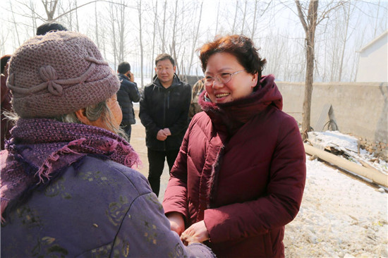 2018年5月11日,张颖波在看望大新镇陈楼村的困难群众吴凤莲时,曾对她说过一句话,“等你新房盖好,我再来看你。”76岁的吴凤莲把这句话牢牢地记在了心里。一见张颖波的面,拉着手留着泪连声说:“俺家房早就盖好了,就一直盼着恁来。我知道恁忙,可就想让恁看看俺的房……”老人和一位患病的儿子一起生活,去年5月份张颖波来时,她家正因“危房清零”活动而扒掉旧房盖新房。张颖波当时还特意满足了老人的一个愿望,安排村干部为她家房内专门垒个隔断。“我70多了,从来没住过这么好的房、从来没过过这么好的日子!”新建的三间砖瓦房、一间配套齐全的厨房和垒好的院墙让老人感慨不已,发自肺腑地说着党和政府的好。“老人家,我今天就是想看看房子改造的怎样,也给你拜个早年。”张颖波拉着吴凤莲老人的手说:“房子盖好了,也算了了你的一个心愿,有党和政府的帮助,日子会越来越好。你要照顾好自己和孩子,有啥困难就找村里干部。”