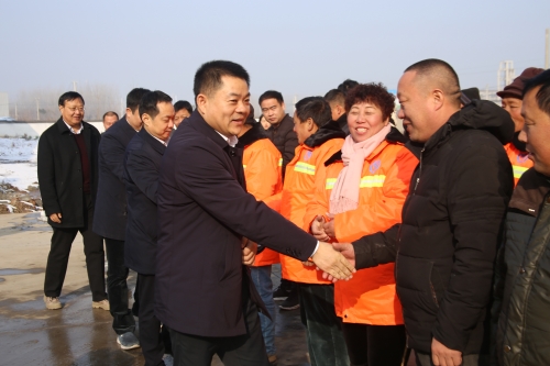 在港区城管办、公用事业办所在地,孙红伟代表港区党委、管委会向城管队员、环卫工人、市政工作人员一年来为港区建设做出的辛勤劳动和贡献表示衷心的感谢!