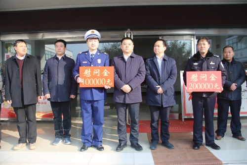 随后,孙红伟、程若光向公安、消防人员分别送上慰问金。并携同港区领导班子向公安干警、消防官兵们以及他们的家人致以新春的祝福。