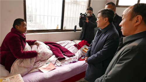 随后,皇甫立新、刘国庆一行来到槐店镇高营行政村,看望慰问了困难党员高功命、劳模高延旭、困难群众高四清,给他们送去了慰问品和慰问金,向他们致以新春的问候和祝福。并叮嘱随行人员要时刻把老党员、劳模、困难群众的冷暖放在心上,加大保障力度,及时了解他们的生产生活所需,积极主动帮助他们解决实际困难,努力提高他们的生活水平和质量,把党和政府的关怀真正落到实处,使他们真真切切感受到党和政府的温暖。