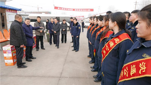 在县公交公司,皇甫立新首先向全体干部职工致以节日的问候,对他们一年来为全县人民安全顺利出行做出的贡献表示感谢。在认真听取有关负责人关于节日期间增开班车和车次的汇报后,皇甫立新说,公交车作为公共交通运输体系中的重要组成部分,不仅在完善城市交通运输格局、方便市民出行方面发挥着重要作用,同时也是城市形象的象征。希望坚守岗位的公交职工要继续提供优质服务,文明安全驾驶,为居民在春节期间走亲访友和安全出行提供方便、搞好服务,展示出沈丘公交公司员工的良好素质和良好形象。并叮嘱公交公司负责人要合理安排好职工的工作和生活,为广大一线工作人员安心工作提供坚实的后勤保障,让他们更加舒心愉快地服务广大群众。