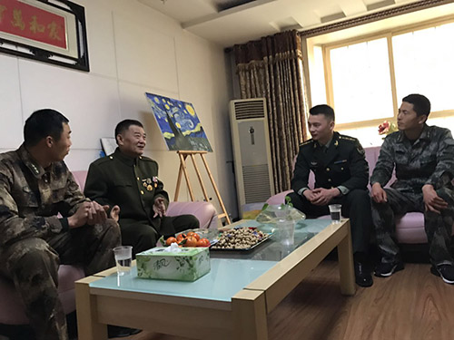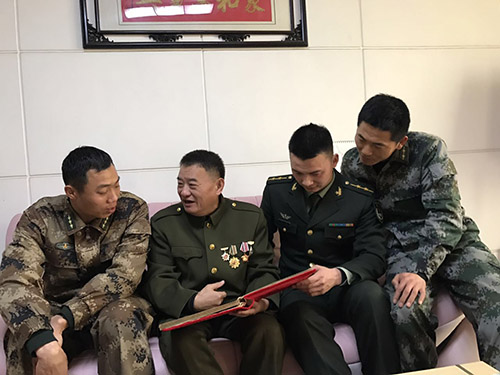 本报讯 追忆峥嵘岁月,铁血军魂永在。2月3日上午,春节的脚步越来越近,空气中弥漫着节日喜庆的气息。3名返乡探亲的“周口好兵”、一等功臣柳东坡、刘威、崔二伟相约慕名来到被中央军委授予“英雄步谈机员”荣誉称号、一等功臣海水干家中,聆听老英雄讲述当年的战斗事迹,上了一堂生动的国防教育课。