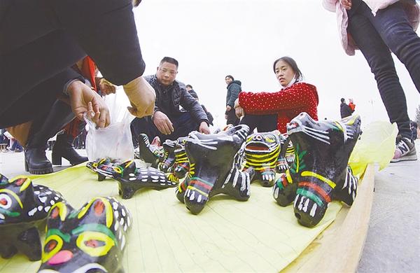 游客、香客们进入景区,除祭祀外,或击鼓撞钟,祈求福祉,期盼风调雨顺、五谷丰登;或到蓍草园,许下心愿,系上许愿带;或摸摸子孙窑,祈求多子多福;或坐一坐花轿,过一把轿瘾;或买些小吃,带几件泥泥狗和布老虎(如图 ②)……①9