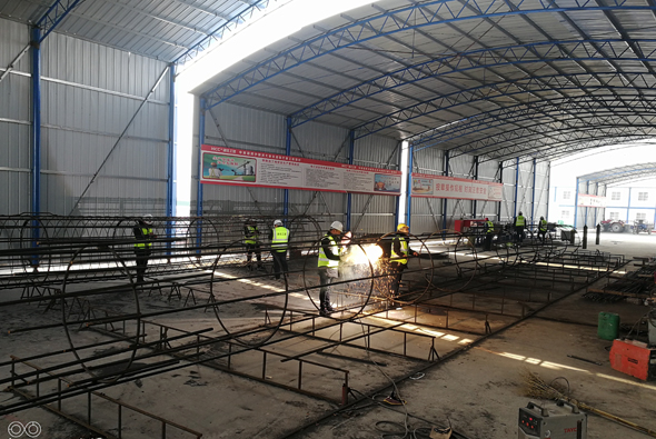为确保我市百城提质重点项目中原路跨沙颍河大桥及道路打通工程目标进度,项目施工方春节期间放弃休假,全力按预期节点推进各项工作。图为施工人员在进行水上桩钢筋笼焊接作业工作。 记者 王映 摄