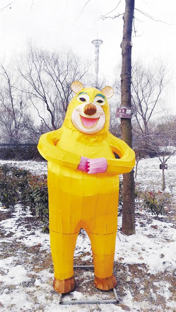 “熊二”憨态可掬,“大象”表情呆萌。记者昨日8时在周口公园看到,各式各样的彩灯分布在公园各处,令人目不暇接。据工作人员介绍,目前彩灯安装工作已过大半,预计正月初十晚上亮灯。