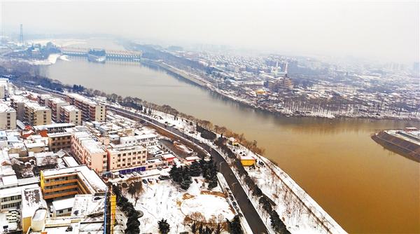 2月13日,周口市中心城区银装素裹,房屋、树木、沙颍河更显秀美,宛如一幅清新淡雅的水墨画。