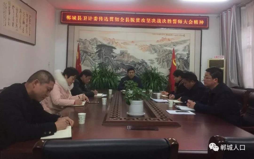 2月13日,郸城县脱贫摘帽决战决胜誓师大会在县人民会堂隆重召开。下午,县卫计委及时组织召开了委全体班子成员工作会,会议认真传达学习了全县脱贫摘帽决战决胜誓师大会精神,重点学习了县委书记罗文阁、县长李全林等领导在大会上的重要讲话精神,同时对全县卫生计生系统2019年脱贫攻坚重点工作任务作了统一安排部署。