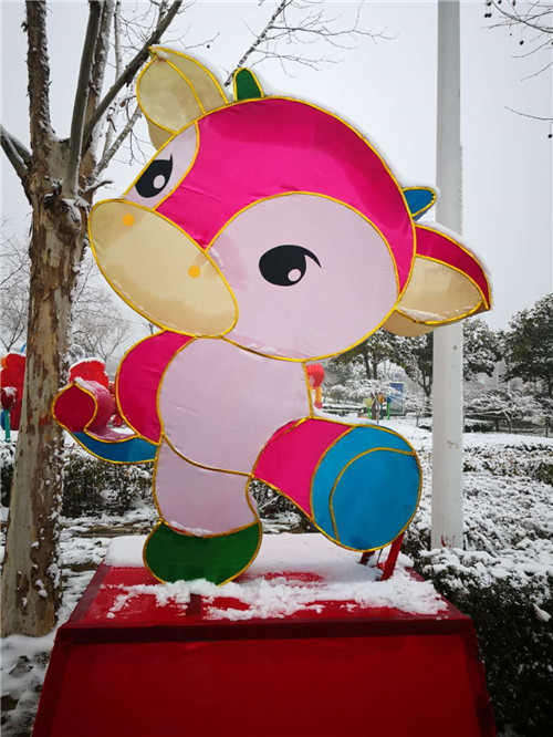 昨日,记者在元宵灯会周口公园展区口看到,花灯布置在紧张有序进行。周口公园南门大型灯组的生肖猪造型喜庆又可爱。虽然还没有组装完毕,仍吸引了许多路过的市民拍照。