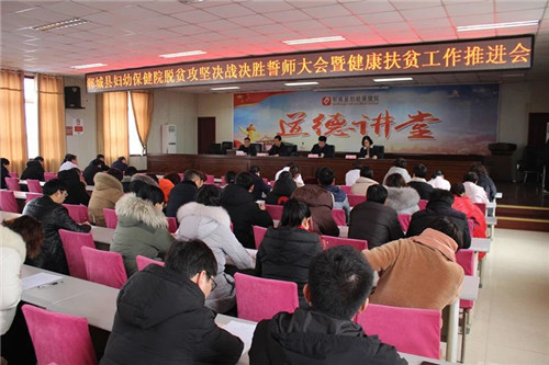 2月16日,郸城县妇幼保健院召开脱贫攻坚决战决胜誓师大会暨健康扶贫工作推进会,医院领导班子及全体帮扶责任人参加会议。