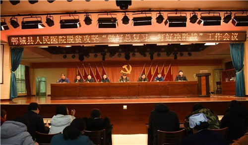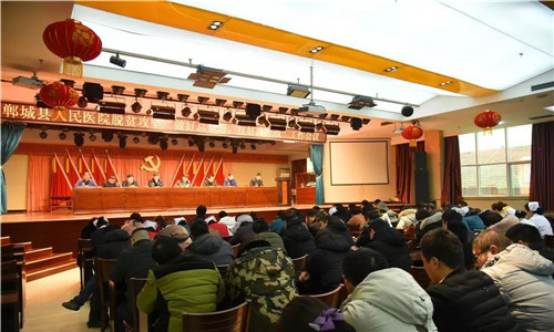 2月15日下午,郸城县人民医院在门诊五楼召开脱贫攻坚“做好总复习,打好决胜战”工作会议,传达落实县卫计委扶贫工作会议精神,部署脱贫攻坚工作。郸城县人民医院院长于健偕全体院领导班子出席会议,院党委书记高飞主持。健康扶贫办、医保、财务、宣教、医政、护理、药事、医疗装备等肩负健康扶贫任务的职能科室负责人、全体护士长、3个帮扶村扶贫队长及全体扶贫队员200余人参加会议。