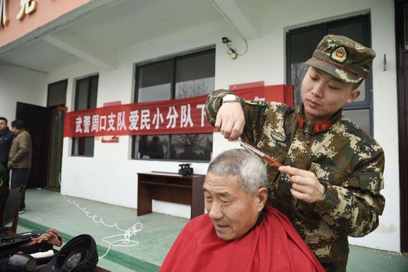 乡村老年人们的身体状况牵动着支队领导的心,他们派出支队医务人员走进村落,在简易的地方办起巡诊。药盒上的细心标记,手把手的诊疗,情真意切嘱咐,都是官兵们真切的表达。支队理发员带着理发工具和一颗赤诚的心来到了村里,为老人们边理发边唠家常,老人脸上乐开了花儿,笑着说“我家孙子和你大小差不多哩!”村里的孩子们也很喜欢这群穿着军装的叔叔们,不仅因为他们每次来都会送上精美学习用品,先进的多媒体设备,更因为他们身上军人特有的责任与担当。