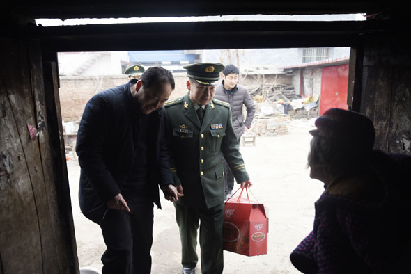 商水县汤庄乡付楼村是武警周口支队的精准扶贫村,今年春节期间,武警周口支队支队长杨大岭带着周口支队爱民小分队再次来到了村中,送上大米、面粉、油等生活物资,更是送来了生活上的帮助和情感上的关怀。