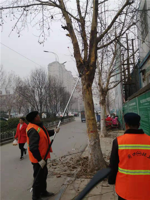 2月26日上午,为避免枯枝坠落伤人,有关部门派出人员在庆丰路与中原路交叉口东侧清理行道树枯枝。