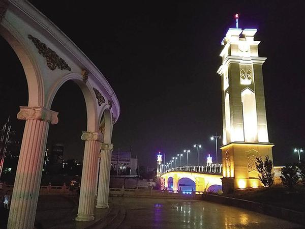 夜幕下的八一大道桥。