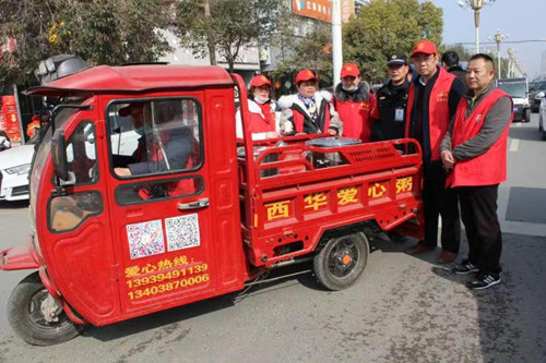 西华县爱心粥屋组织个私党员志愿者在女娲广场开展“爱心茶水送满城”活动,摆摊设点,出动流动车,免费送爱心枣茶。