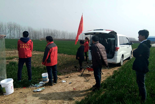 西华无人机产业园党支部给红花、皮营、西夏、艾岗、叶埠口、东夏等乡镇(办事处)贫困村“小麦一喷三防”免费喷洒农药,确保贫困户今年夏粮丰收。