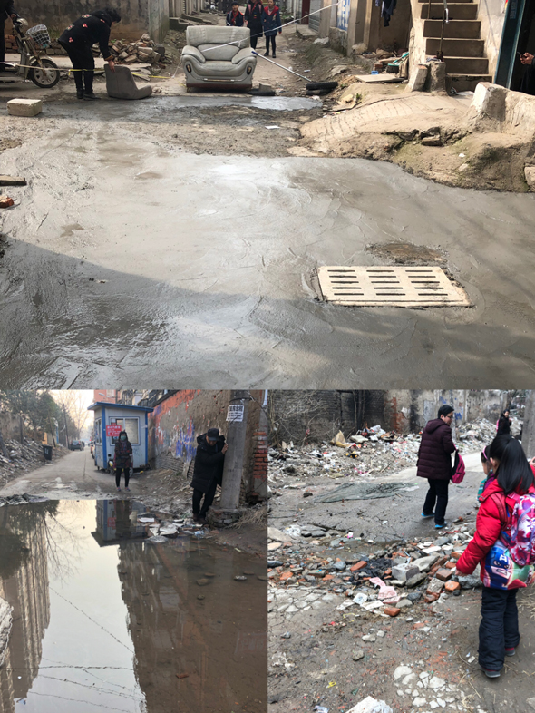 2月25日,本报6版以《这个水坑 让人闹心》为题,报道了中心城区丁字街至人民公园东门的路中间,一处因下水道倒灌形成的水坑影响市民通行的消息。2月28日,相关部门联系工人进行清淤疏通,3月1日,水坑彻底消失。3月4日,工人用砖和水泥铺平了坑洼处,困扰附近居民的问题被彻底解除,政府的快速行动,赢得了市民的称赞。拼版图片:上图为铺平的水坑;左下图为当时积水的水坑;右下图为积水退去。记者 张鲁莎 摄