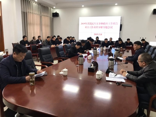 3月8日下午,鹿邑县县委常委、常务副县长陆志杰主持召开2019年省县民生实事和政府工作报告重点工作责任分解专题会。县领导张峰、曹玉娟、毛斌、王初立出席会议。