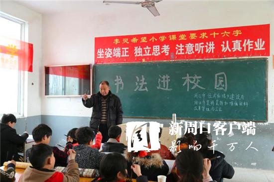 3月13日上午,来自周口市住房和城乡建设局、周口市装修装饰和墙体材料改革管理办公室的党员和志愿者邀请中国书法家协会会员吴敬走进东新区许湾乡李灵希望小学,为孩子们现场讲授毛笔书法,受到孩子们的欢迎。周口日报·新周口客户端记者 黄佳 摄