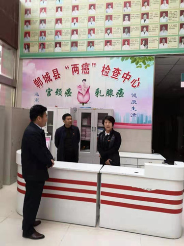 近日,郸城县副县长肖炜、县卫计委主任付登霄一行,到郸城县妇幼保健院检查指导“两癌”免费筛查工作,该院院长亢国良、院工会主席杨敏陪同检查。
