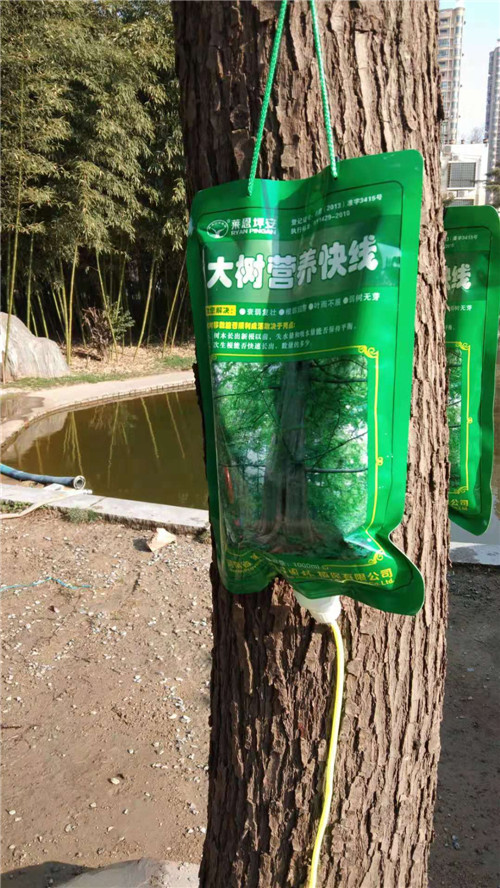 3月18日,记者在市教体局院里看到,几棵树上都挂着一个绿色的塑料袋,塑料袋上写着“大树营养快线”,袋口向下连着一个导管,导管与普通的输液器非常相像,只是在中间的位置分成了两根,分出来的两根导管末端各连着一个针头,针头插进大树接近树根的位置。据悉,这些“营养快线”可以为树木补充营养和水分,促进树木生根、发芽,帮助树木增强抗病能力,提高树木的成活率,保证树木整体长势。
