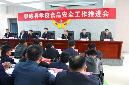 为进一步确保广大师生饮食安全,3月19日,郸城县学校食品安全工作推进会召开。县教体局局长刘现营主持会议并讲话,副局长刘士领,政府督学陶永昌,党组成员马力彬、张卫华、魏宏和县食药监局副局长付天华出席会议。