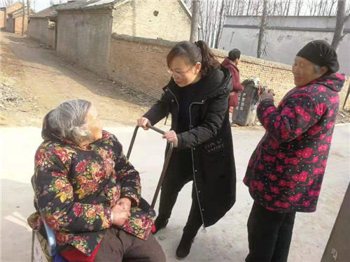 铿锵扶贫路,拳拳民生情。林娜加班加点,扎实的作风不仅有效推动了帮扶工作的顺利推进,而且也换来了当地村民的“点赞”。为推进老人户合吃合住问题,林娜三番五次去做工作,段屯行政村于楼村86岁的老人王全英,年迈不能自理,遭儿子嫌弃,3个儿子都不愿赡养老人。一次,阴雨天,老人不慎跌倒,摔伤胳膊,儿女们都不管不顾,林娜在走访的过程中了解情况后,立即帮老人买来膏药贴上,同时开始做儿女的思想工作,“家有一老似有一宝,孝亲爱老是中华民族的传统美德”,经过林娜再三做思想工作,三个儿子茅塞顿开,愿意赡养老人,最终老人在三个儿子家轮流吃住。在林娜及队员的共同努力下,段屯行政村不仅老人户全部合户,而且在全村掀起了争做贤孙孝媳的局面。一名老党员袁士成,每次见了工作队都竖起大拇指说:“儿女好,儿女好,儿女再好不如共产党对俺好”。