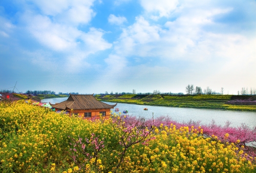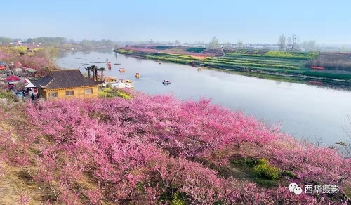 每年3月底至4月上旬,西华颍河两岸万亩桃花竞相开放,树下金灿灿的油菜花、绿油油的麦苗相映成趣,红、黄、绿构成了五彩缤纷的人间仙境,置身其中,花香沁人心脾,色彩绚丽夺目,景色美不胜收,恍如身处陶渊明笔下的“世外桃源”。