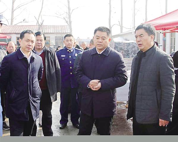 周口港区城管办主任李卫东(右一)陪同港区领导调研李埠口市场