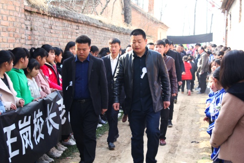 院内正厅上方,悬挂着黑底白字的横幅“沉痛悼念王岗同志”,院外道路两侧,摆满了人们敬献的黑纱、花圈。市教体局领导来了,县政府副县长肖炜来了,县教体局局长刘现营来了;局党组成员、各乡校校长来了,王岗最爱的学生、同事来了;学生家长也来了……大家胸佩白花,向这位爱岗敬业的基层校长表示崇高的敬意和深切的哀悼。
