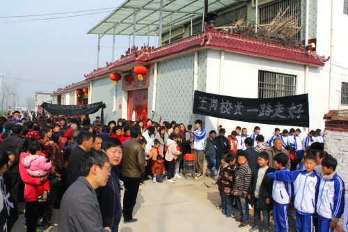 “教育师魂铸就止步盛年悲矣,杏坛大爱挥洒平民风范伟哉!”3月24日上午,郸城县东风乡郑庄行政村大王庄一个普通的农家院内外,挽幛轻垂,哀乐低回。数千名师生、群众自发前来送别年仅37岁的该村小学校长王岗。