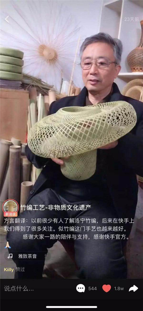 快速地把一根根竹子编成圈,打上结,洛宁县张永杰将他手法娴熟的竹编视频上传到快手的平台上,这门隐藏在河南洛宁山村里的竹编手艺吸引了近9万“老铁”的关注。几乎每天都有新鲜出炉的竹编制品从村里发出,收件地址遍布全国。