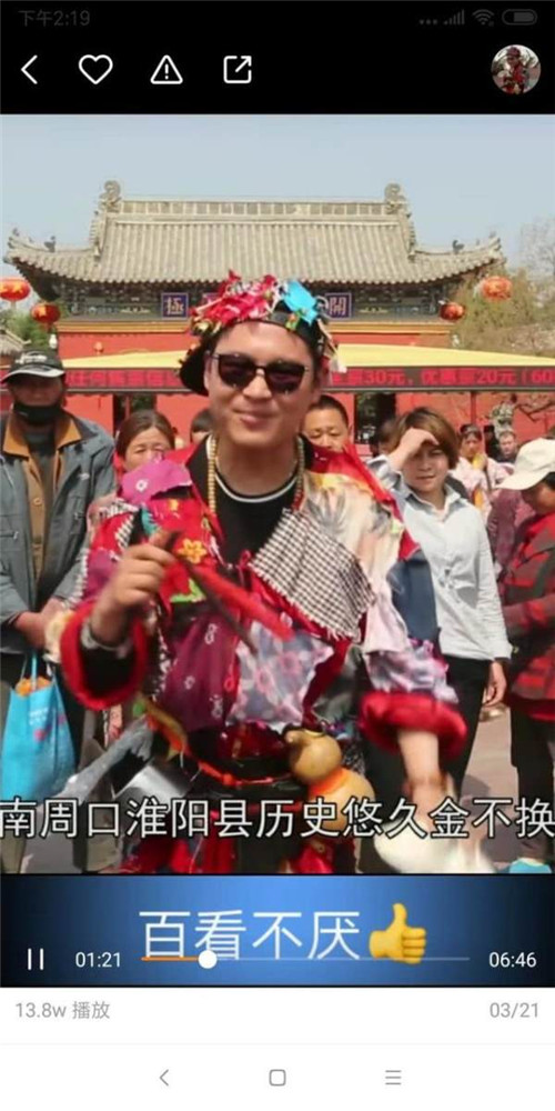 “我打竹板用眼瞅,这边摊位卖牛肉,买牛肉这边来,先祝老板你发财,你发财我沾光,来个‘要饭的’聂晨光,还请老板把俺帮……”穿着“破衣”打着竹板,念着求帮衬的词句,可别以为这是新式乞讨,这是优秀的民间艺术“莲花落”,已被列入第三批国家级非物质文化遗产名录。每到周末,聂晨光就在项城的公园里面唱“莲花落”,现场围观的人不少,在快手直播的平台上还有50多万粉丝围观。
