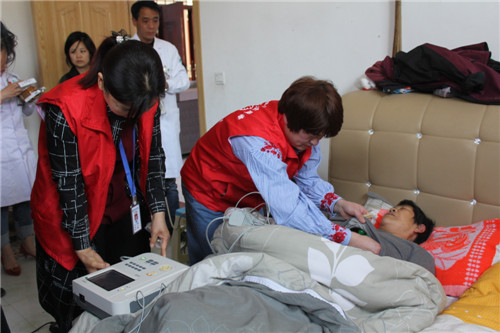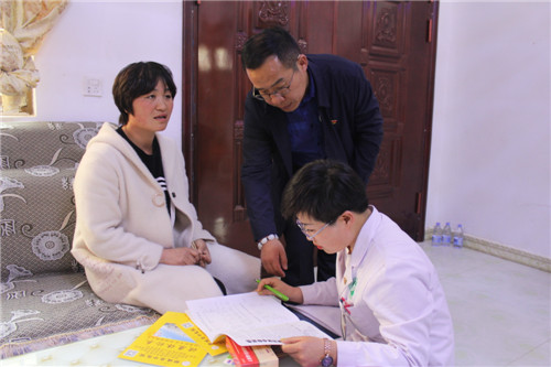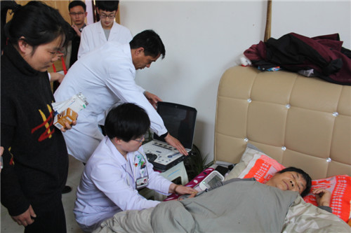 在王岗家中,专家们先后为王岗父母、妻子进行了彩超、心电图、血压、血糖等项目检查,并根据检测数据,现场分析、研究病情,做了详细医嘱,还为他们送了包含各种项目的健康体检表。