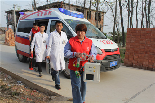 4月1日下午,王海超带领该院医务部主任肖俭、体检科主任李慧满、彩超室主任申宗献、心电图室主任刘松梅、志愿者服务队主任肖帆等专家,携带设备,专程来到东风乡郑庄行政村大王庄,为王岗家属进行健康体检。
