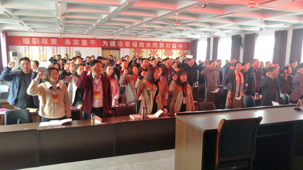 开班之前,县领导和全体学员举起右手、握紧拳头,在鲜红的党旗下,重温了入党誓词。