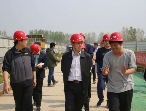 4月5日,周口港区管委会主任程若光到辖区重点项目建设施工现场,督导创卫和大气污染防治工作,港区党委委员杜广贤陪同。