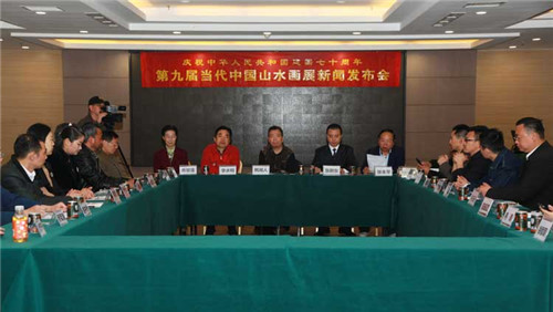 为深入贯彻落实习近平总书记在文艺工作座谈会、中国文联十大、作协九大开幕式上、全国宣传思想工作会议上关于文艺工作的重要讲话精神,庆祝中华人民共和国成立70周年,以“绿水青山就是金山银山”的生态文明建设发展理念,守护绿水青山,建设美丽中国。由中国文联艺术交流中心、河南博物院、中原书画院主办,《中国书画报》中原艺术中心、河南机电职业学院中原美术学院、中原美术馆、《中原书画报》承办的“第九届当代中国山水画展”征稿工作启动新闻发布会,4月9日在郑州安信大酒店多功能厅举行。