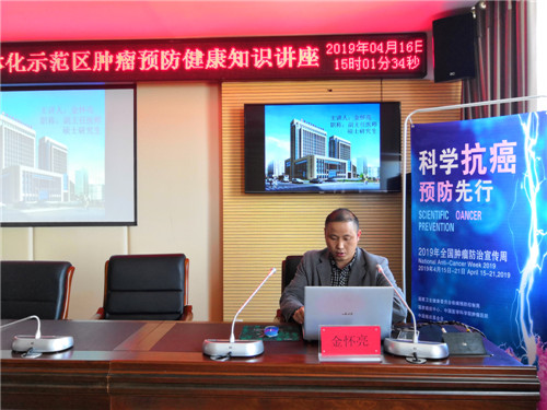 值第25个“全国肿瘤防治宣传周”之际,4月16日下午,城乡一体化示范区卫生计生中心、计生协邀请东新区人民医院肿瘤科金怀亮主任开展“科学抗癌 预防先行”讲授肿瘤预防健康知识活动。区卫生计生中心疾控、宣传负责人,卫生院(社区卫生服务中心)分管副职、公共卫生科全体人员参加了此次讲座。